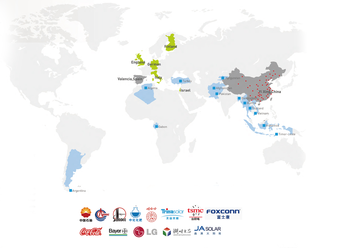 江華集團業(yè)務涉及石油化工、重工業(yè)、冶金礦業(yè)、電力、制藥、新能源等各行業(yè),業(yè)務遍及全國各大城市,并已承接了20多個海外環(huán)保治理項目,遍及孟加拉、土耳其、俄羅斯緬甸等國,同時開發(fā)了越南、印度、泰國、斯里蘭卡等國際環(huán)保市場,長期與美國、法國芬蘭、瑞典、德國、日本、韓國、以色列等國外知名環(huán)保公司保持緊密合作關系。